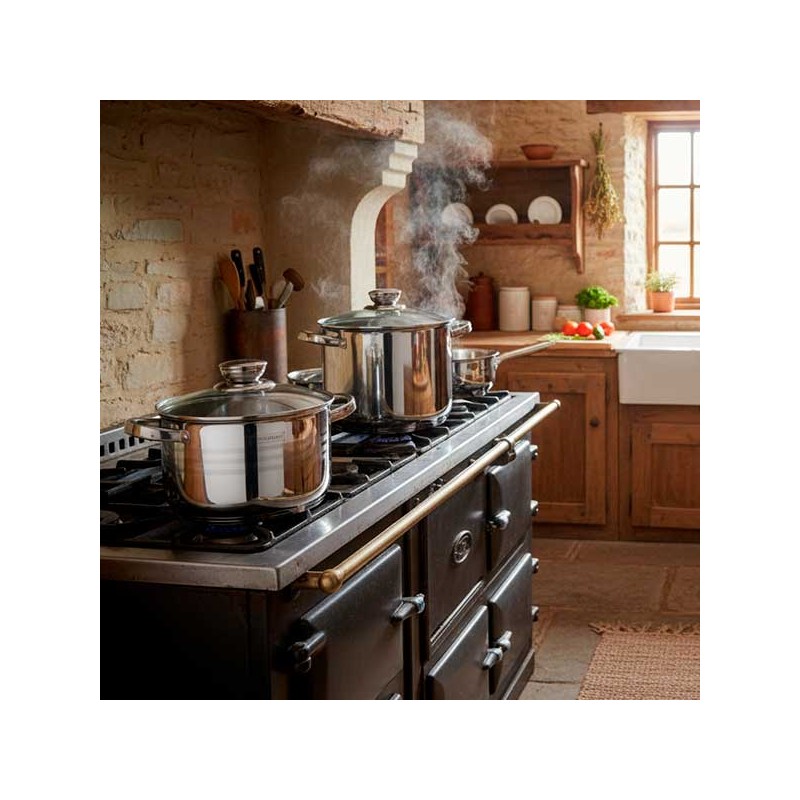Il nostro set include tutto il necessario per ogni tuo piatto: una padella da 24 x 7,5 cm, coperchi in vetro, e casseruole di varie dimensioni, perfette per ogni occasione. Gli alimenti si riscaldano rapidamente e il materiale trattiene il calore, permettendoti di cucinare con poca acqua e friggere con poco olio, minimizzando la perdita di minerali e sapore. Inoltre, il design innovativo evita angoli in cui possono accumularsi residui di cibo e grasso, rendendo la pulizia un gioco da ragazzi. E non dimenticare che sono adatti per il lavastoviglie!