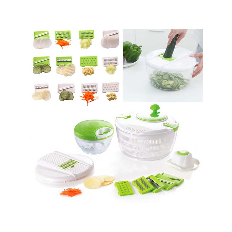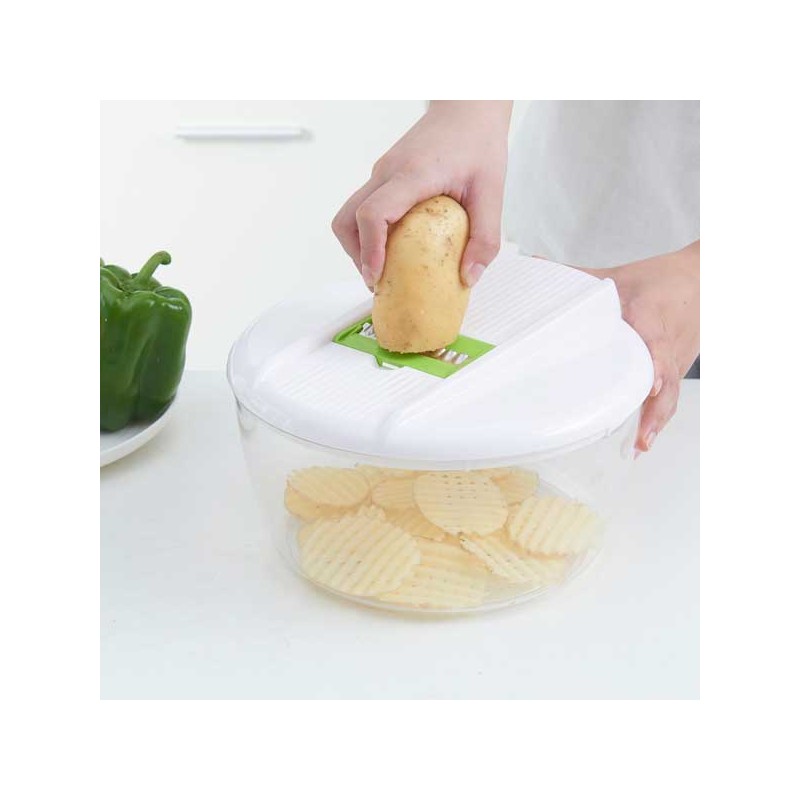 Questo set viene fornito con una protezione per le dita per tenerti al sicuro mentre usi il prodotto. Il robot manuale ha un meccanismo rotante e mentre la verdura viene affettata si conserva nello scomparto trasparente cosí da non sporcare nulla. La manovella si adatta al design ergonomico, risparmiando lo sforzo durante la rotazione e tagliando tutti gli alimenti a pezzi rapidamente e facilmente.