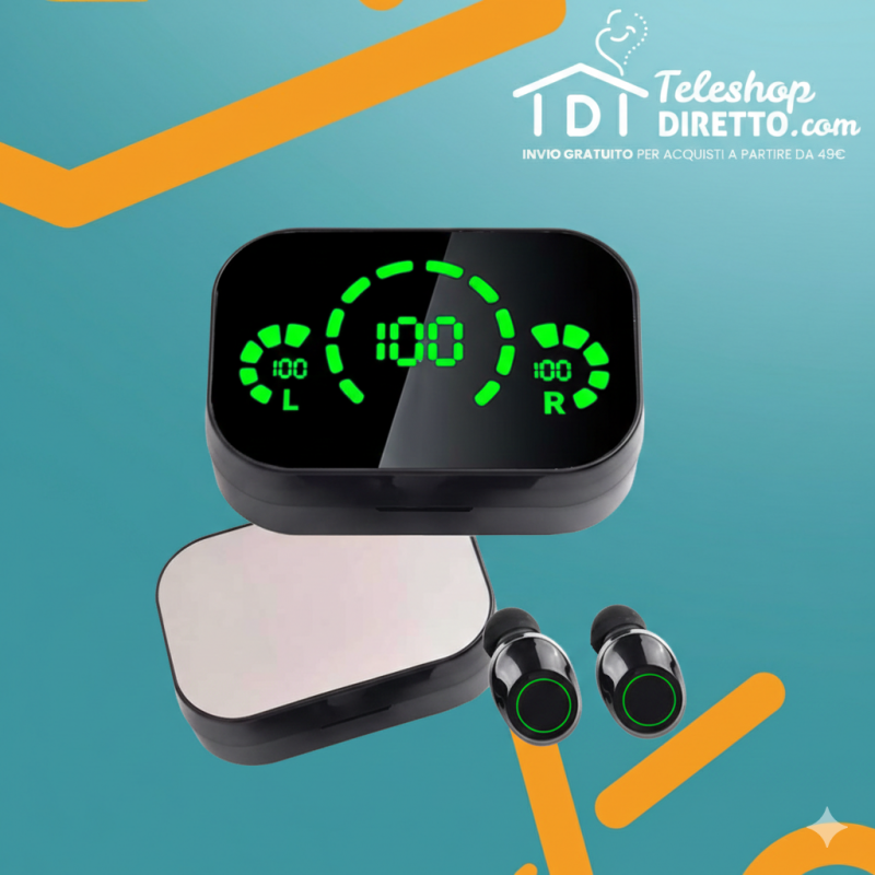 La custodia di ricarica è dotata di un display LED che ti permette di controllare il livello di carica di ciascun auricolare in modo semplice e veloce. Dì addio alle sorprese sgradite di batteria scarica! Con una tecnologia Bluetooth all'avanguardia, la connessione è rapida e stabile, compatibile con tutti i tuoi dispositivi preferiti: Android, iOS e Windows. Ogni nota e ogni battito saranno riprodotti con una chiarezza cristallina, grazie ai bassi profondi e ai toni alti nitidi. Non è solo musica, è un'esperienza immersiva che ti accompagnerà ovunque.