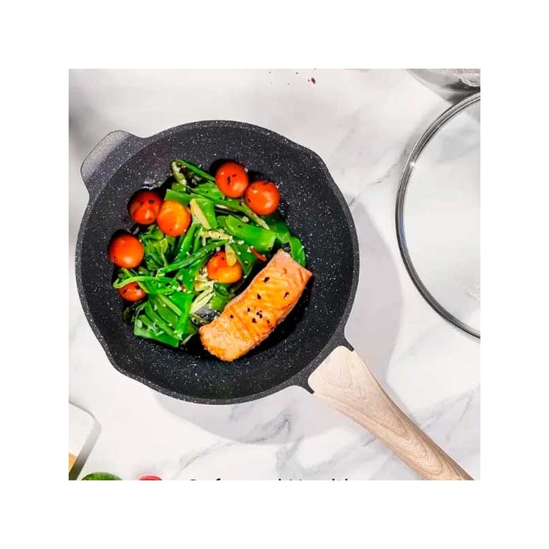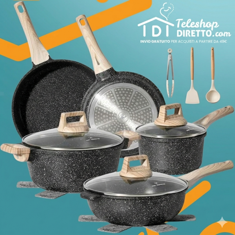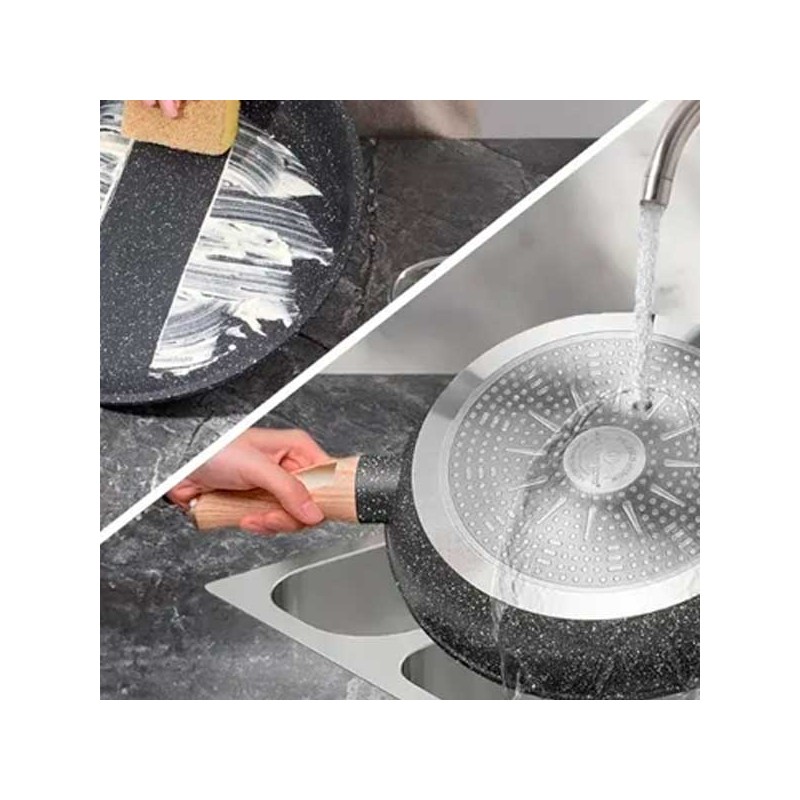 Ti capita che il cibo si attacchi alla padella? Cucinare tutti i tipi di cibo senza che avvenga questo oggi è possibile! Grazie a prodotti come il Set di Padelle da 8 Pezzi con rivestimento in marmo. Ogni padella del Set da 8 Pezzi è realizzata con rivestimento in marmo nero.